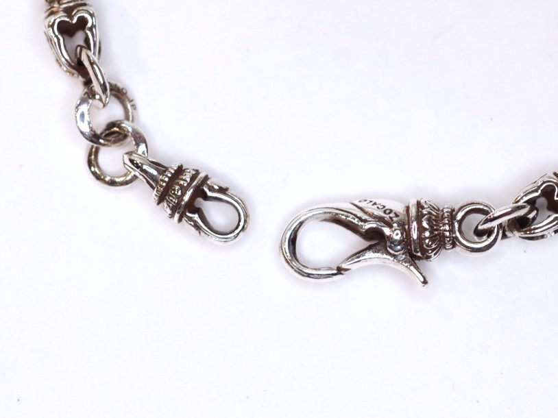 スモール・バード・ドージェを連結したブレスレット。 ジョイントフック部分のバードフィスに拘る彫銀技術は素晴らしいの一言に尽きる。 サイズ:W7mm L217mm 材質:Silver 付属品…