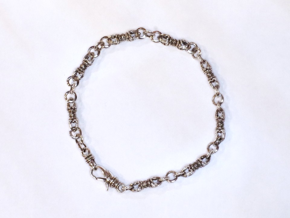 スモール・バード・ドージェを連結したブレスレット。 ジョイントフック部分のバードフィスに拘る彫銀技術は素晴らしいの一言に尽きる。 サイズ:W7mm L185mm 材質:Silver 付属品…