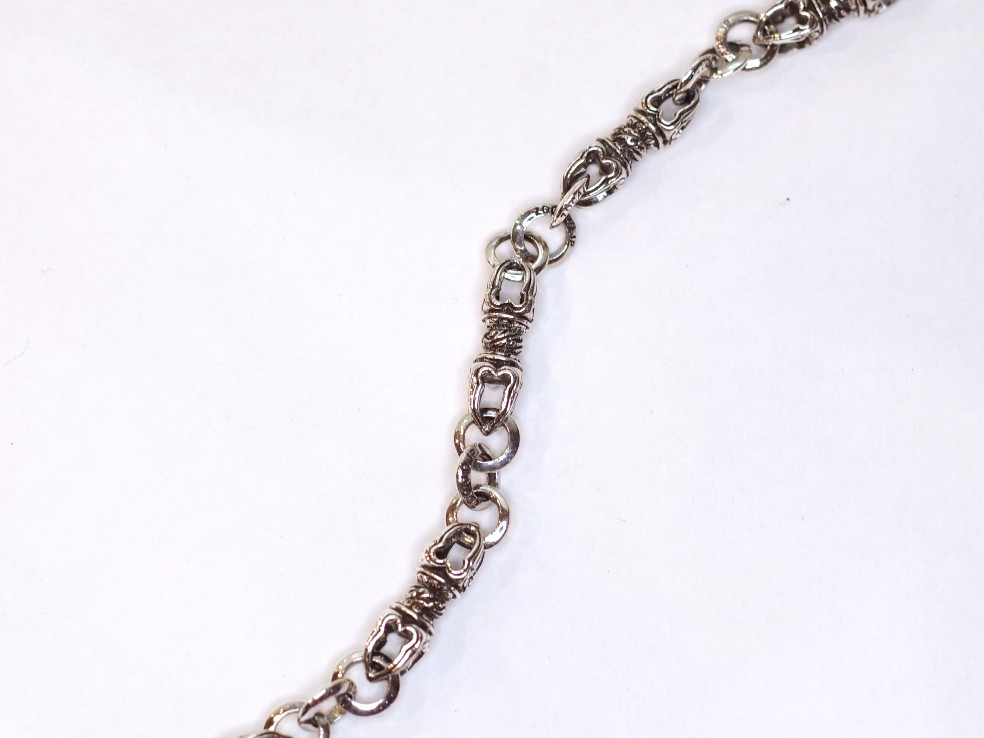 小さいドージェを連結したブレスレット。 留め具のバードフェイスにまで拘った逸品。 シンプルに着けても、バングルや違うブレスレットと重ね着けしてもカッコいいアイテムです。 サイズ:W5mm L…