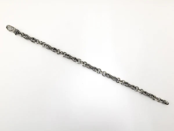 小さいドージェを連結したブレスレット。 留め具のバードフェイスにまで拘った逸品。 シンプルに着けても、バングルや違うブレスレットと重ね着けしてもカッコいいアイテムです。 サイズ:W5mm L…