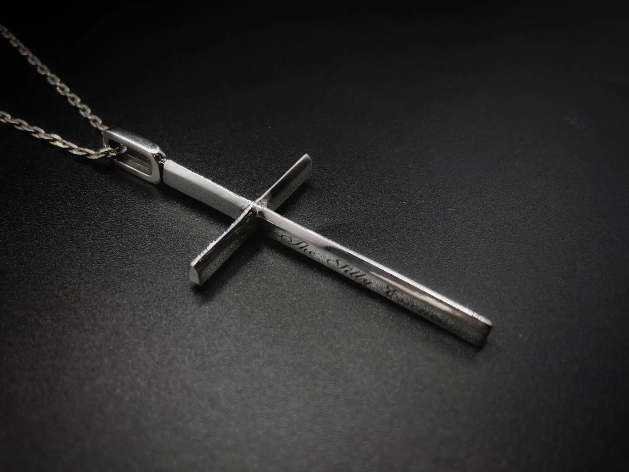 細身のプレートで形成されたシンプルな十字架。