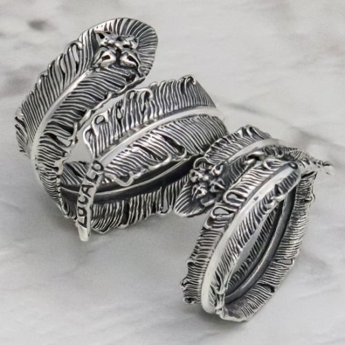 永遠の時を生きるという伝説上の鳥、『フェニックス』のフェザーを全面に彫り込んだリング。