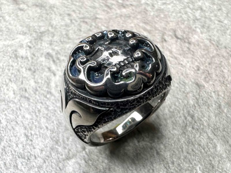 諸平勘 骸骨柄指輪 古美仕上げ 19号 クロップドヘッズ シルバーリング [CLSLCT-R020] 諸平勘 骸骨柄指輪 古美仕上げ 19号 クロップドヘッズ シルバーリング [CLSLCT-R020] 販売価格: 19,800円(税込) 在庫なし Tweet 返品特約に関する重要事項 お問い合わせ クロップドヘッズの小物ブランド『諸平勘/もひかん』 古美仕上げの骸骨柄シルバーリング。古美仕上げとはアンティーク加工のことで、黒塗りさせるために一度サンドブラスト(ガラスの粉を吹き付ける事)という一手間かけてから燻し加工をしています。【サイズ】19号【素材】SILVER925【付属品】諸平勘オリジナルBOX 他の写真 レビュー 0件のレビュー 関連商品 諸平勘 七宝焼TAG ネックレス クロップドヘッズ シルバーペンダント [CLSLCT-P017] 19,800円(税込) 在庫わずか 諸平勘 雲骸骨柄指輪 古美仕上げ 19号 クロップドヘッズ シルバーリング [CLSLCT-R021] 25,300円(税込) 在庫わずか