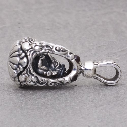 丁寧に彫り上げた学問と商売の神様「ガネーシャ」を卵形の祠のなかに収めたペンダントヘッド。