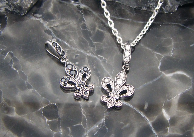 百合の紋章に14石のジルコニアが敷き詰められた華やかなチャーム。