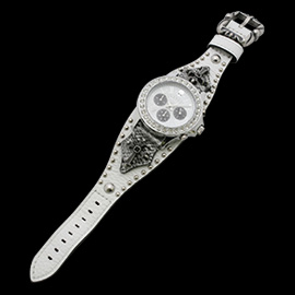 クラシカルなデザインのクロスコンチョをあしらい、ハードなデザインながらも高級感がある仕上がり。