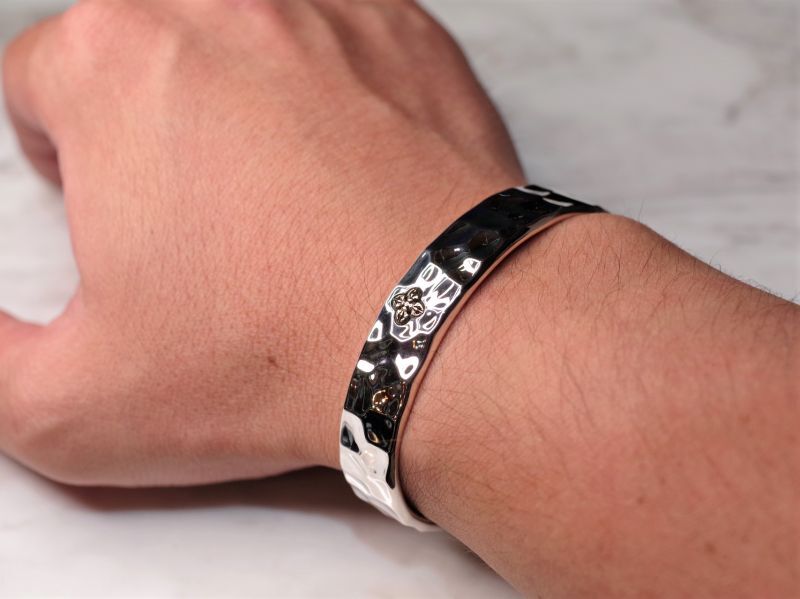 美しい鎚目仕上げのバングルは、銀の持つ輝きを楽しむのにもってこいのデザイン。