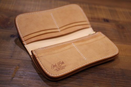 札入れにはマチ部分の開きを制限しない独自の仕切りを付け、使い勝手も良いゴッドフィッシュのロングウォレットです。
