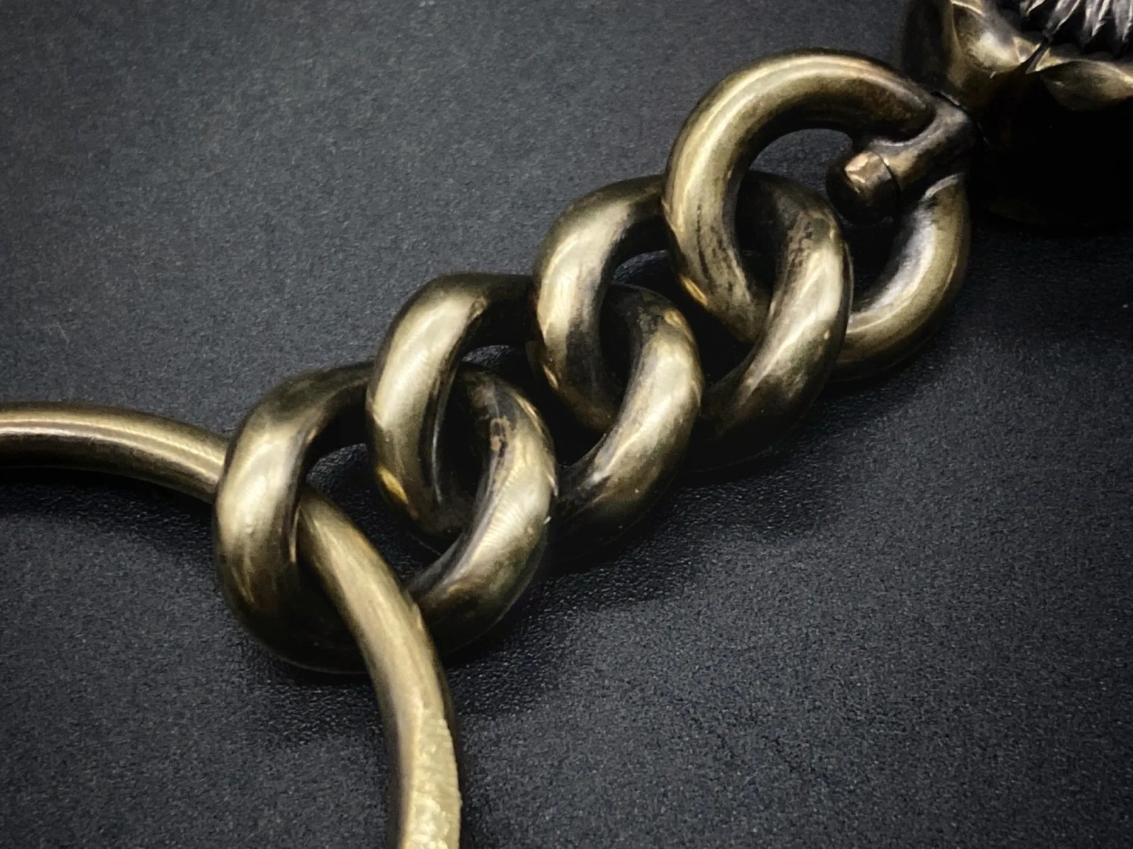 両サイドの十字模様は透かし彫りで施されおりチェーンの喜平パーツはチェーンとチェーンの隙間を埋めた目の詰まったオリジナル喜平パーツを使用。